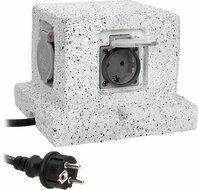 - Buitenstopcontact steen look - Stekkerdoos Buiten 4 stopcontacten - IP44 - Kabellengte 3 meter - Grijs - VOOR BELGIE