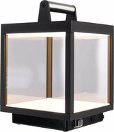 Deze prachtige lamp is een echte blikvanger in iedere tuin of op iedere buitentafel. De krachtige batterij die je met een USB kabel kunt opladen houdt het maar liefst 8 uur vol. De donkergrijze behuizing is van gegoten aluminium en de lamp is voorzien van echte glasplaten waardoor de lamp een stevige en robuuste uitstraling heeft. Dit wordt versterkt door de stevige roestvrijstalen handgreep. De IP54 buitenlamp heeft een geïntegreerde accu waardoor deze maar liefst 8 uur zonder stroom gebruikt kan worden.