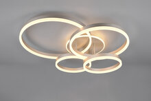 Plafondlamp DRAKE is veel meer dan een lichtbron: het is een architectonisch hoogtepunt. De opvallende structuur van vier in elkaar overlopende lichtcirkels van verschillende grootte creëert een levendige, organische vorm die meteen in het oog springt. Ondanks zijn expressiviteit komt de lamp niet overbelast, maar eerder evenwichtig en stijlvol over - een echt designobject voor moderne kamers dat tegelijkertijd een blikvanger en verlichting is. Technisch gezien overtuigt hij met een verscheidenheid aan functies: de lamp kan eenvoudig met de afstandsbediening worden bediend. De helderheid is traploos dimbaar, evenals de lichtkleur - van warm wit tot koel wit. De geheugenfunctie onthoudt de laatst geselecteerde instellingen, terwijl de geïntegreerde schakeldimmer ook bediening via de wandschakelaar mogelijk maakt. Het ingebouwde nachtlampje zorgt voor extra comfort en zorgt voor subtiel oriëntatielicht zonder de kamer volledig te verlichten.