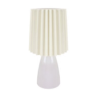 Tafellamp in trendy Gemaakt van polycarbonate PC,Keramiek Peertje: 1 x E14, max. 25 watt. excl. lichtbroon Niet dimbaar. Aan-/uitschakelen via de wipschakelaar aan het snoer. In het belang van ons milieu en om de best mogelijke energie-efficiëntie te garanderen, raden wij het gebruik van LED peertjes aan. LED's verbruiken gemiddeld ongeveer 80% minder energie, hebben een levensduur die tot 25 keer langer is dan die van traditionele gloeilampen en produceren ook aanzienlijk minder warmte. Kleur Lampenkap: Wit Lampvoet: Wit Snoer: Wit Afmeting Lamp: H 30.5 cm Lampenkap: Ø 16 cm, H 12 cm Snoer: L 100 cm Materiaal Lampenkap: Kunststof Lampvoet: Ceramics Snoer: kunststof Productspecifica