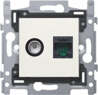 Combinatie coax- en RJ45-aansluiting UTP cat. 6, vlakke uitvoering, met klauwbevestiging. Volledig apparaat (mechanisme + afwerkingsset), afwerkingskleur white.