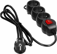 De 3-weg verlengkabel is een gebruiksvriendelijke en veilige oplossing voor kantoren en huishoudens. Het product in de kleur zwart, uitgerust met: 3 stopcontacten van het Franse type (2P+E), kabel H05VV-F 3x1,5 mm2, lengte 5 m, platte stekker met comfortabel handvat, veiligheidsluiken, tweeweghoofdschakelaar met achtergrondverlichting, handige hanger als u het apparaat bijv. aan een muur moet ophangen aan de muur, PVC-isolatie.