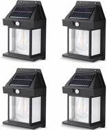 RABI - 4 Stuks - Solar Led wandlamp buiten - Tuinverlichting op zonne-energie - Met Ingebouwde Bewegingssensor - Zwart - 3000K Warm Wit