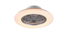 De Stralsund ventilator is een bijzonder elegante ventilator in een andere vorm dan u gewend bent van een ventilator. Deze ventilator heeft geen bladen aan de zijkant, maar heeft een propeller aan de binnenkant. Door de 3 standen snelheidsmodus wordt de koele lucht verplaatst door de gehele ruimte. De ventilator is gemaakt van kunststof in de kleur titaan/wit. In de rand van de ventilator zit een dimbare LED-module van 30 watt (2.200 lumen) met daarom heen een witte rand met starlight effect. Dit geeft een sfeervol effect in uw kamer als de lamp brandt. De LED is ook instelbaar in wit kleuren van 3.000 tot 6.500 kelvin. Dit allen kan worden geregeld via de meegeleverde afstandsbediening. De ventilator produceert in de drie verschillende standen de volgende decibel: 45/ 50/ 54 dB(A).