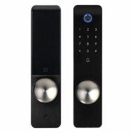 Slim deurslot met vingerafdruklezer en codeslot is een innovatieve oplossing met een automatisch vergrendelingsmechanisme, ontworpen voor installatie in de plaats van een standaard slotcilinder, die de dagschoot pas ontgrendelt nadat een juiste pincode is ingevoerd, of via een smartphone-applicatie Bluetooth gebruiken. De vingerafdruklezer verhoogt de functionaliteit en veiligheid aanzienlijk. Het maximale aantal opgeslagen vingerafdrukken is 100. De set bevat een servicesleutel voor een ingebouwde slotcilinder waarmee de deur kan worden geopend in het geval van een batterij- of elektronicastoring. Geen kabels nodig, gevoed door 4x AA alkaline batterijen LR6, die in de set zitten.