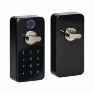 Slim deurslot met vingerafdruklezer en codeslot is een innovatieve oplossing met een automatisch vergrendelingsmechanisme, ontworpen voor installatie in de plaats van een standaard slotcilinder, die de dagschoot pas ontgrendelt nadat een juiste pincode is ingevoerd, of via een smartphone-applicatie Bluetooth gebruiken. De vingerafdruklezer verhoogt de functionaliteit en veiligheid aanzienlijk. Het maximale aantal opgeslagen vingerafdrukken is 100. De set bevat een servicesleutel voor een ingebouwde slotcilinder waarmee de deur kan worden geopend in het geval van een batterij- of elektronicastoring. Geen kabels nodig, gevoed door 4x AA alkaline batterijen LR6, die in de set zitten.