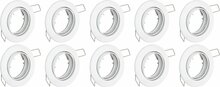 Specificaties: Technische informatie Diameter: 88 mm Hoogte: 25 mm Inbouw diameter: 70 mm Inbouw diepte: 55 mm Fitting: GU10 Voedingstype: 2-draads Aantal stuks in verpakking: 10 Productinformatie Kleur: Wit Afwerking armatuur: Glans Stijl: Modern Vorm: Rond Beschermingsgraad: IP20 Bedieningswijze: Wandschakelaar Verstelmogelijkheden: Kantelbaar Montagewijze: Inbouw Materiaal armatuur: Aluminium
