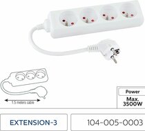 - Stekkerdoos - Verlengsnoer-Verlengkabel - Met Penaarde - 4x 2P+E ,1.5 meter H05VV-F 1x1,5mm2, Imax=16A, wit max 3680 watt VOOR BELGIE