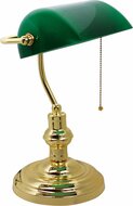 Deze Tafellamp 1-lichts Goud M.Glas groen Banker is een mooie lamp in de kleur goud/groen., gemaakt van gesatineerd glas/staal. Uitermate geschikt voor de ruimte eetkamer, hal/gang, slaapkamer, werkplek, woonkamer. Het energielabel van deze lamp is A, B, C, D, E. De lamp is langwerpig/rechthoekig gevormd. De lichtbronnen die hierbij horen zijn Halogeen/LED/Spaarlamp. Beveilingsklasse van deze lamp is IP20