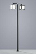 Deze moderne lantaarn uit de Cubango familie is gemaakt van gegoten aluminium in een antracietkleur. De meegeleverde LED lichtbronnen met E27 fitting zorgen in de twee lantaarns onder een transparante witte afdekkap uit hoogwaardige kunststof voor een egale warme lichtuitstraling. Met zijn IP54 (stofvrij) klasse is deze 2 meter hoge fraaie moderne lantaarn geschikt voor buiten.