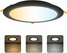 - WAFEEL -LED Downlight - Inbouw Rond 18W - CCT - Aanpasbare licht kleuren - 3000K/4000K/6000K - 2450 Lumen - Mat Zwart - Ø170mm - IP54 - Binnen/Buiten